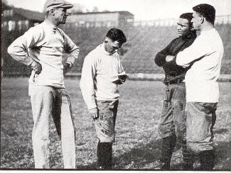 The Cal coaching staff in 1922: Head Coach Andy Smith, Nibs Price,Walter Gordon, and Albert Rosenthal, at California Field