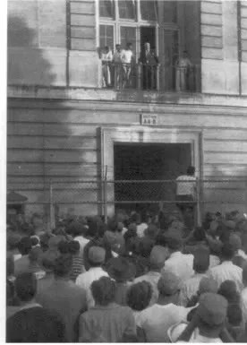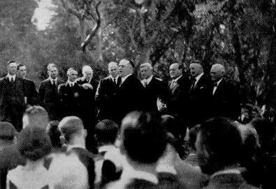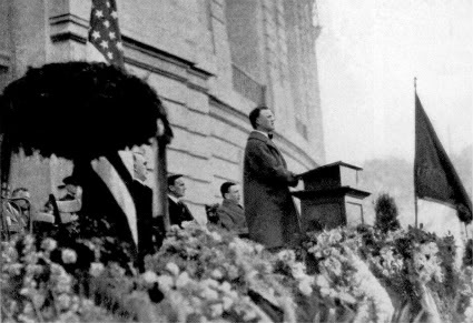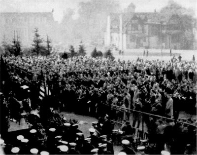 Pappy Waldorf and Cal team members address fans from the north balcony of Memorial Stadium.