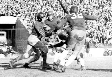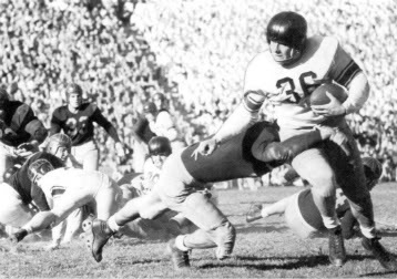 Jackie Jensen, with one of his 27 carries in the 1948 USC game.