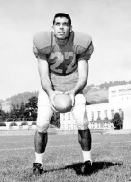 The 1951 team dropped off a bit because of injuries to key players, including a knee injury to Olszewski, suffered against USC. After Johnny O went down on his first carry, the USC tackler, Pat Cannamela, appeared to deliberately give his right leg an extra twist as he lay on the ground, leading to a near-brawl, both on the field and in the stands. Cal Athletic Director Brutus Hamilton and faculty representative Glenn Seaborg protested to the conference to no avail. Years later, Seaborg wrote that it was clear that Cannamela had deliberately injured Olszewski, and complained, “The only satisfaction I got was an evasive non-apology from USC Coach Jess Hill.” Although Olszewski returned for the 1952 season, he was never the same player again. Thus, although the Bears began the 1951 season 4-0 and ranked #1, by the time the Big Game rolled around they were 7-2 and ranked #19. It was Stanford, undefeated and ranked #3, that had visions of a national championship. But the Bears pulled off a stirring 20-7 upset to ruin Stanford’s dreams, and, incidentally, to finish the season 8-2. After five seasons, Pappy Waldorf’s regular season record at California was an astonishing 46-3-1.