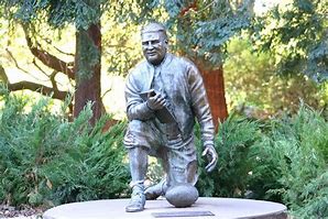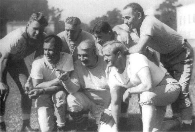 Waldorf was a very hot property by now, and the next year he was wooed away to Evanston, Illinois by Northwestern University. Waldorf recognized that his players were not outstanding, and would probably not win many games. So he decided on a limited focus. He later explained, “When you’re faced with one of those years when your material is only fair and you’re not going to win many games, put your eggs in one basket. Pick a tough team and lay for it. Knock if off, and you’ve got yourself a season. . . . I chose Notre Dame.” Waldorf’s “secret weapon” against Notre Dame was a brand new strategy – changing defensive formations on each play. It worked. Notre Dame was completely confused by the changes on defense by Northwestern, and the Wildcats pulled off a startling 14-7 upset. When the coaches went out that night for a drink to celebrate, the bartender, noticing Waldorf nursing a single drink all night long, started calling him “Pappy.” His assistants picked up on it, and the nickname stuck. Northwestern finished the season 4-3-1, and Pappy Waldorf won the first-ever National Coach of the Year Award.