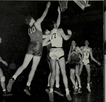 The Golden Bears in action in their final game of the 1945-1946 regular season, an 88-46 thrashing of Stanford.