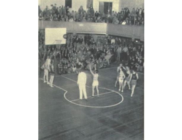 The 1926-1927 Golden Bears playing a non-conference game at the sold-out old Harmon Gymnasium (now the site of Dwinelle Hall). The old gym’s capacity was 1,400 fans.