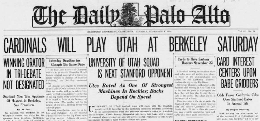 No, I am not making this up. In 1924, the actions of the University of Southern California resulted in the Stanford football team playing a home game at California Memorial Stadium. Against Utah. There were allegations of players being paid, a fired coach, canceled games, secret deals, a school suspended from the conference, recriminations, counter-recriminations,Continue reading “The Year USC Caused Stanford to Play a Home Game in Berkeley”