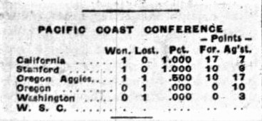 The Oakland Tribune‘s Doug Montell was more effusive. He agreed that the Bears had played a “mediocre brand” of football for most of the first half, but found that they had really “come alive” in the second half. He believed that “Andy Smith’s warriors showed real knowledge of the great collegiate game of football,” and that considering it was their first game of the season, against one of the strongest Olympic Club teams in years, “the victory of the Blue and Gold is taken as an indication of great strength for the coming Coast Conference season.” The win may have been more impressive than it seemed, as the Olympic Club turned out to be a pretty good team that year. Two weeks later they would beat Stanford 10-7.