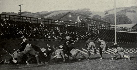 The [Olympic] Clubmen made their yards when least needed, that is in the center of the field they went through for ten and twenty yard gains, but when they needed the yards, the California men blocked them up to a standstill. And on the other hand, the California team made its yards when needed, and once inside the ten yard line, nothing could stop them.