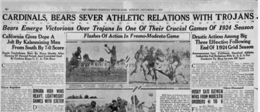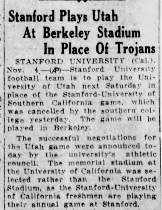 The Friday, October 1, 1920 edition of The Daily Californian describes the general confusion over Saturday’s game. Note that the Golden Bears were often referred to as “Bruins” in the days before UCLA “borrowed” that name.